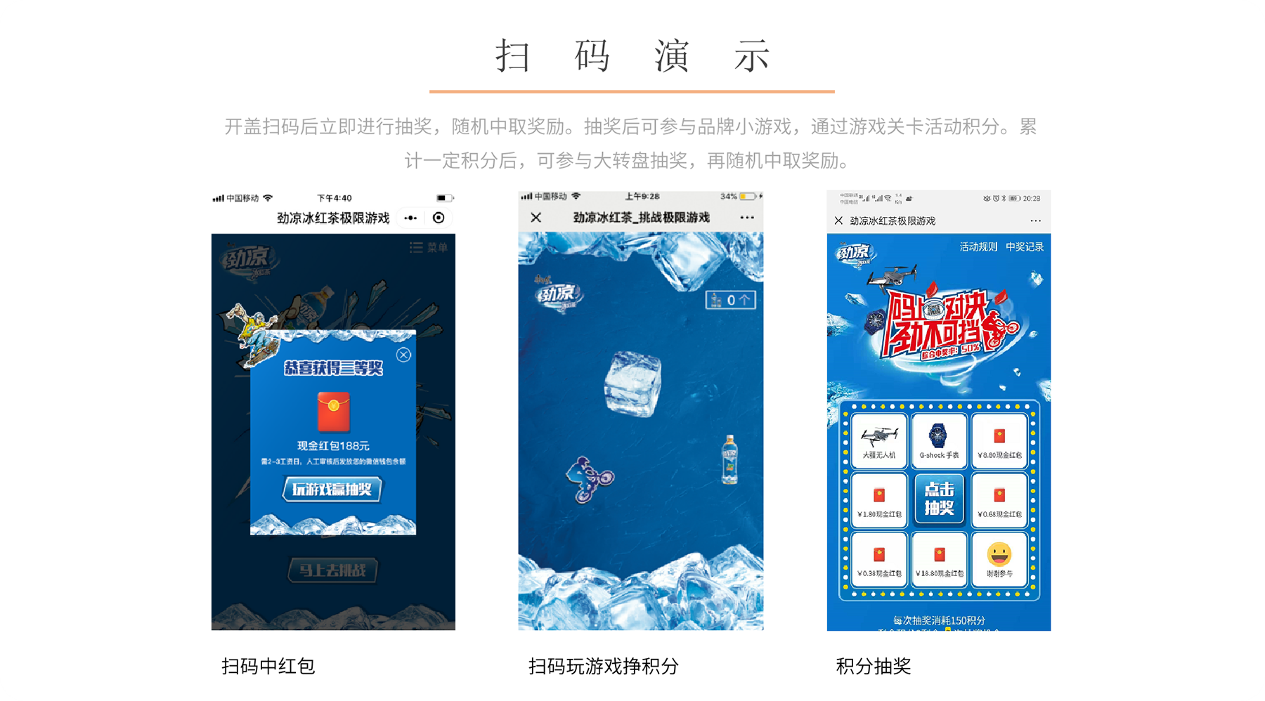 康师傅饮品系列在2005年4月推出含有天然薄荷成分的康师傅劲凉冰红茶,打破了之前冰茶品类口味单一的局面,目的在于满足年轻消费群对饮料口味的多样化需求以及更加新鲜刺激的口感需求。康师傅劲凉冰红茶在冰红茶基础上,添加天然薄荷成分,不仅有柠檬和精选红茶的好喝,更带来像风暴一样的凉快口感。产品包装的设计采用了冰凉清爽的蓝色。